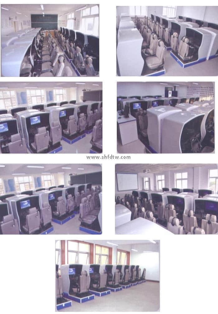 座艙由駕駛艙座,視景計(jì)算機(jī),視屏(19寸液晶顯示器),操作傳感器,數(shù)據(jù)采集卡,耳機(jī)和話筒等組成。座艙包含了與真實(shí)車輛相同的操作部件,“五大”操縱機(jī)構(gòu):方向盤、離合器,腳剎,油門和手剎。變速器:倒檔、一檔、二檔、三檔、四檔、五檔和空擋(自動(dòng)檔只含前進(jìn)檔、倒車檔和駐車檔)。真車操作開關(guān):左轉(zhuǎn)向燈、右轉(zhuǎn)向燈、應(yīng)急燈、喇叭、點(diǎn)火開關(guān)、總電開關(guān)、安全帶、車門、雨刷、遠(yuǎn)光燈、近光燈、遠(yuǎn)近光交替。座艙既可以進(jìn)行聯(lián)網(wǎng)訓(xùn)練,也可以進(jìn)行單機(jī)訓(xùn)練。利用主控臺(tái)計(jì)算機(jī),最多可以將30臺(tái)座艙連接到一個(gè)訓(xùn)練場(chǎng)景進(jìn)行訓(xùn)練。學(xué)員通過操作不同的操作部件,經(jīng)過各自的傳感器產(chǎn)生不同的操作信號(hào),這些操作信號(hào)通過數(shù)據(jù)采集卡傳送給計(jì)算機(jī),經(jīng)過各種訓(xùn)練模型的逼真運(yùn)算,最后在視屏上輸出與操作相對(duì)應(yīng)的三維場(chǎng)景與各種聲音。