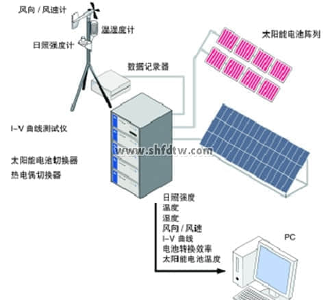 準(zhǔn)確測(cè)試光伏方陣和組件在野外條件下的太陽(yáng)輻射強(qiáng)度,環(huán)境溫度,風(fēng)速,電池組件的溫度,開(kāi)路電壓、短路電流、最大功率、最大功率點(diǎn)電壓、最大功率點(diǎn)電流和填充因子測(cè)算光伏方陣和組件在標(biāo)準(zhǔn)測(cè)試條件下(STC)下的開(kāi)路電壓、短路電流、最大功率、最大功率點(diǎn)電壓、最大功率點(diǎn)電流、填充因子和轉(zhuǎn)換效率