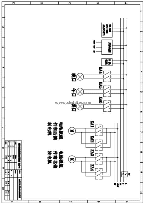 按照接線圖鏈接線路,完成整套系統(tǒng)的接線。通過plc程序模擬手動(dòng)自動(dòng)控制晨日、午日、晚日、兩軸聯(lián)動(dòng)系統(tǒng),完成系統(tǒng)調(diào)試。