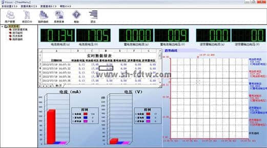 將太陽能發(fā)電電池板輸出端接成12v或者24v輸出形式,接到滑動(dòng)變阻器兩端,觀察電流電壓變化。通過監(jiān)控軟件的到相應(yīng)的數(shù)據(jù)。如圖2-6所示: