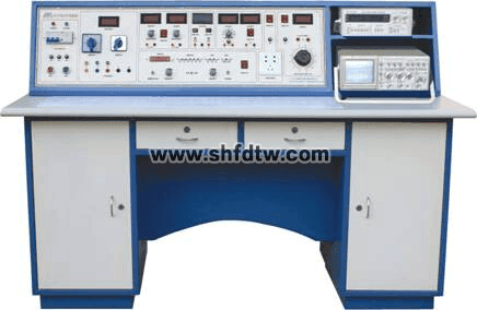 該實(shí)驗(yàn)臺(tái)底下設(shè)有三相四線及“地”線(共五線)輸入接口,并配有漏電保護(hù)開關(guān)(電源總開關(guān)),三相指示燈,電壓換相開關(guān)、電壓表,電流表以監(jiān)督三相電源。