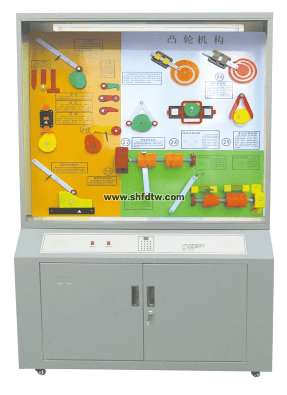本公司新推出的機(jī)械原理示教陳列柜是根據(jù)大、中專院校、技校、職業(yè)學(xué)校的機(jī)械原理教學(xué)大綱設(shè)計(jì)的電化教學(xué)設(shè)備。天威公司推出的陳列柜設(shè)備共分十個(gè)柜和一個(gè)電腦控制臺(tái),并配有一臺(tái)功率放大器,VCD機(jī)和激光片,聲控同步演示,采用新技術(shù)的單獨(dú)驅(qū)動(dòng)由電腦或電子設(shè)備控制運(yùn)轉(zhuǎn)演示,可由VCD控制順序自動(dòng)運(yùn)行講解;又能根據(jù)教材、教學(xué)需要而遙控任意選擇進(jìn)行單獨(dú)演示。模型材料采用進(jìn)口有機(jī)板;板面附有銀滌淪不干膠作必要的圖表和文字說明,演示形象真,運(yùn)行可靠,制作工藝美觀,使用本陳列柜可提高教學(xué)效果,節(jié)約學(xué)時(shí)是一套現(xiàn)代化機(jī)械課程教學(xué)應(yīng)用實(shí)驗(yàn)室設(shè)備。