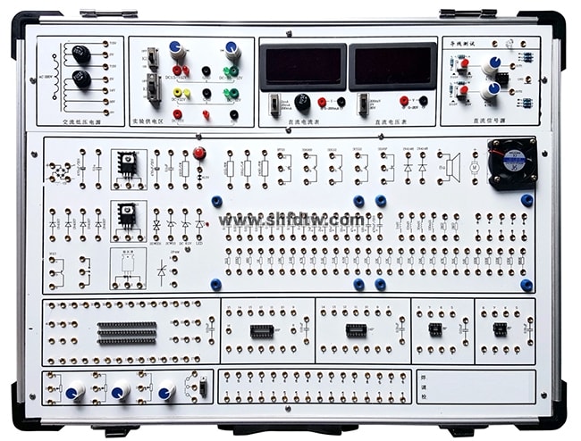 實驗箱由全鋁合金箱體、高性能線性電源和實驗電路板組成。其中實驗電路既可以采用固定功能模塊方式,也可以自行搭建實驗電路,電路原理和元器件符號清晰,實驗用元器件全部焊裝在線路板的反面,安全可靠,不易損壞。本實驗箱適用于本專院校所有電類和非電類專業(yè)《模擬電子技術(shù)》、《電子線路》等課程的實驗教學。