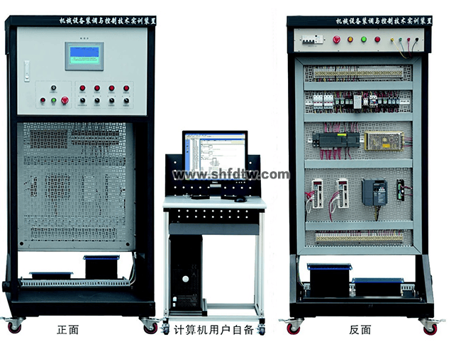 本實(shí)訓(xùn)裝置主要由實(shí)訓(xùn)臺(tái)、電氣控制柜(包括電源控制模塊、可編程控制器模塊、變頻器模塊、觸摸屏模塊、步進(jìn)電機(jī)驅(qū)動(dòng)模塊、伺服電機(jī)驅(qū)動(dòng)模塊等)、動(dòng)力源(包括三相交流電機(jī)、步進(jìn)電機(jī)、交流伺服電機(jī)等)、機(jī)械傳動(dòng)機(jī)構(gòu)、二維送料部件(十字滑臺(tái))、轉(zhuǎn)塔部件、模具、離合器機(jī)構(gòu)、機(jī)械式?jīng)_料機(jī)構(gòu)、裝調(diào)工具、常用量具、操作臺(tái)、型材電腦桌等組成。