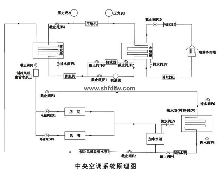 隨著社會的發(fā)展,人們的生活水平不斷提高,中央空調(diào)在大型商場、賓館、寫字樓、商住樓等許多方面得到越來越廣泛的應(yīng)用。中央空調(diào)的設(shè)計、管理、維修在現(xiàn)代生活中也越來越重要。為便于人們了解、學習中央空調(diào)的基本原理、基礎(chǔ)知識,掌握其管理、維護及維修方法,本公司專業(yè)技術(shù)人員開發(fā)生產(chǎn)中央空調(diào)實驗裝置系列產(chǎn)品。