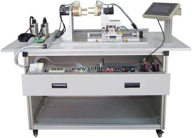 1.機(jī)構(gòu)部分:包括實(shí)訓(xùn)桌、工業(yè)鋁型材、抽屜、二軸旋轉(zhuǎn)模型(含精密滾珠絲桿、主軸同步機(jī)構(gòu)、檢測傳感器、限位開關(guān))等組成。