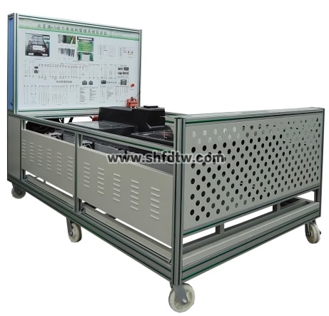 (比亞迪e5 EV450純電動(dòng)汽車) 鋰動(dòng)力電池組、電子水泵與多路水閥、電池管理系統(tǒng)BMS、維修開關(guān)、輔助蓄電池(12V45AH)、高壓配電箱、漏電傳感器、車載充電機(jī)、國(guó)標(biāo)充電插座與充電槍、直流接觸器(包含充電繼電器、總正繼電器、總負(fù)繼電器、預(yù)充繼電器)、急停開關(guān)與電源總開關(guān)、汽車熱管理系統(tǒng)(包括電機(jī)及控制器、電池包、高壓電控總成的熱管理系統(tǒng))、一體化全鋁合金型材搭建的移動(dòng)臺(tái)架(1500×700×1700mm ,帶自鎖腳輪裝置,帶安裝檢測(cè)端子的原理面板1448×940mm)、故障考核系統(tǒng)、設(shè)備操作說明書。