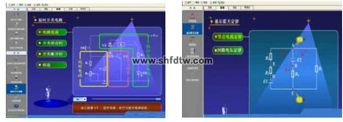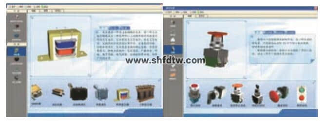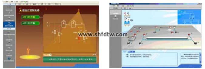 利用生動(dòng)的動(dòng)畫演示,配合語音對(duì)電路工作原理進(jìn)行講解;可通過半透明的原理圖上的提 示進(jìn)行相關(guān)操作;具有與設(shè)備一致的實(shí)驗(yàn)項(xiàng)目和實(shí)物元件介紹;具有實(shí)驗(yàn)?zāi)康牡拿枋?、?shí)驗(yàn)器材的展示、典型電路的分析、電路原理聲動(dòng)同步的解說、元件布局模擬操作、電路原理的模擬接線,模擬現(xiàn)場(chǎng)的工業(yè)仿真等功能。該軟件所有圖標(biāo)及器件均采用3D建模,通過美工處理,整體畫面美觀大方。通過軟件的教學(xué)及仿真,能激發(fā)學(xué)員的思維、增強(qiáng)學(xué)員的感性認(rèn)識(shí),更好地剖析教學(xué)的重點(diǎn)、難點(diǎn)。
