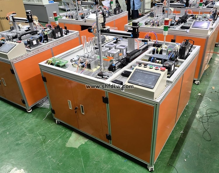 2、以上模塊對(duì)應(yīng)以下單元:PLC單元、485通信單元、工業(yè)視覺(jué)識(shí)別單元、RFID產(chǎn)品溯源單元、氣動(dòng)控制基本單元、變頻調(diào)速單元、觸摸屏單元、以太網(wǎng)交換機(jī)、伺服系統(tǒng)控制單元等組成、溫度檢測(cè)變送單元。