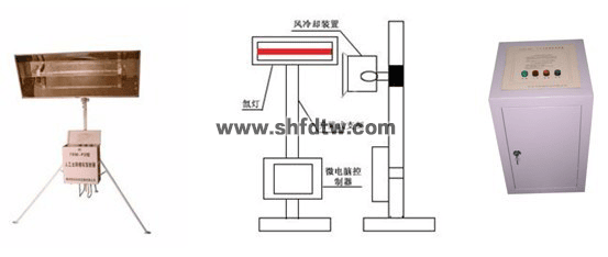 本光源采用:3KW長弧氙燈,具有光色好(近似太陽光)功率大,體積小,發(fā)光效率高等優(yōu)點(diǎn)。適用于工地,廣場等高大面積的照明,以及太陽能實(shí)驗,人工模擬化學(xué)反應(yīng),植物培養(yǎng)等等。